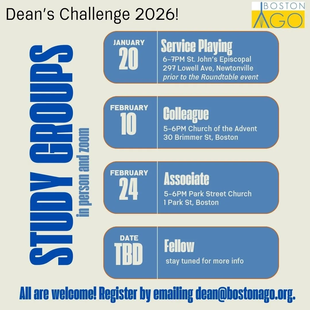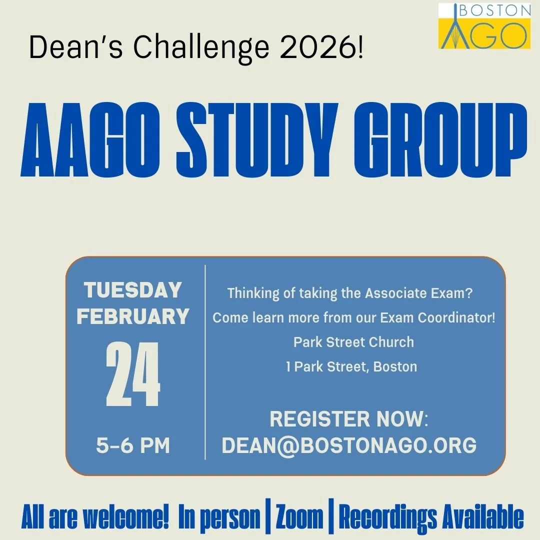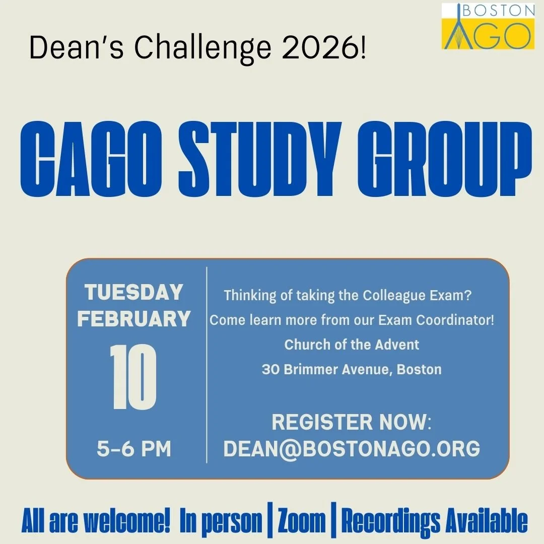 The Boston Chapter of the American Guild of Organists (BAGO) is a collegial community of individuals who share a deep passion for and admiration of the organ and its literature.